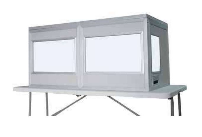 Кабіна-надбудова на стіл для одного перекладача - модульна збірно-розбірна конструкція з 4х панелей з акриловими вікнами і 2х кабельних каналів.