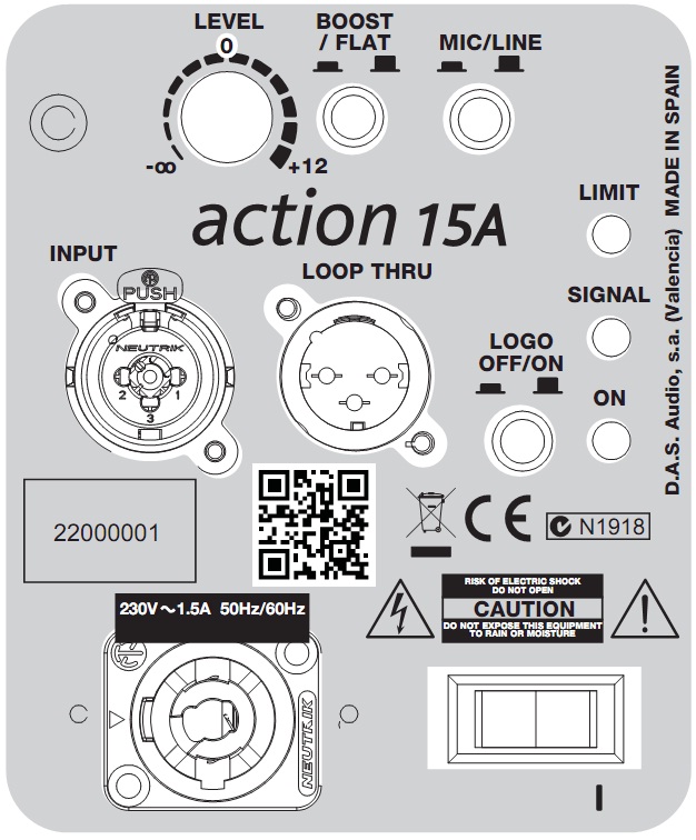ACTION 15A обеспечивается наличием в схемотехнике усилителя 24-битного DSP процессора. Помимо функций управления, процессор также переключает частотную характеристику акустической системы, оптимизируя её работу в качестве самостоятельной АС, либо совместно с cабвуфером (режимы BOOST/FLAT).