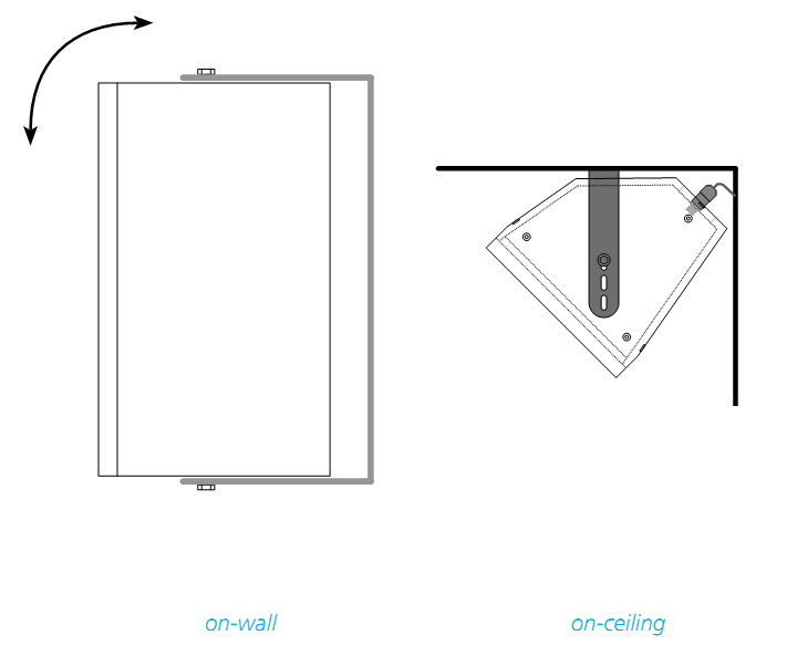- настенный или потолочный монтаж с применением опциональных кронштейнов;