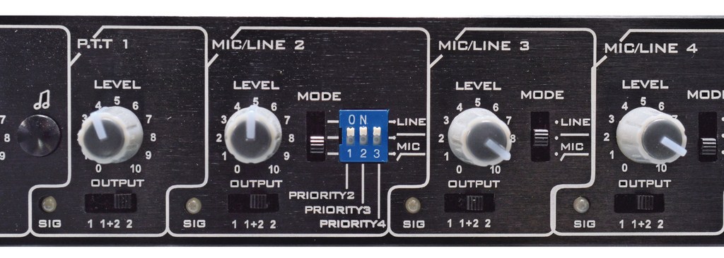 входы: 9 х лин. (XLR/RCA) + 9 мик. (XLR) + 1 x PTT (DIN-7)