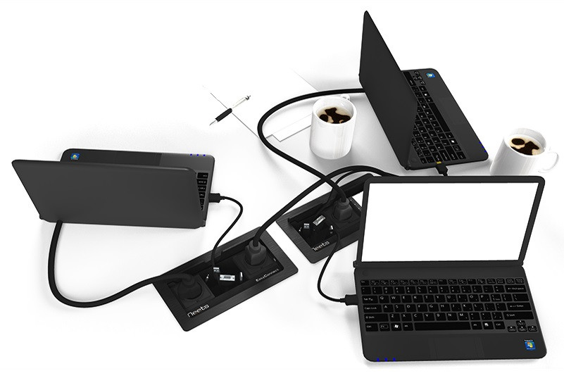 Biamp EasyConnect EC-P-EU призначений для усунення проблем типових локальних підключень аудіо-відео обладнання. Досить часто доповідачі стикаються з такими незручностями як відсутність необхідних кабелів, або недостатня їх довжина, або навіть складності зі звичайною розеткою 220 вольт.